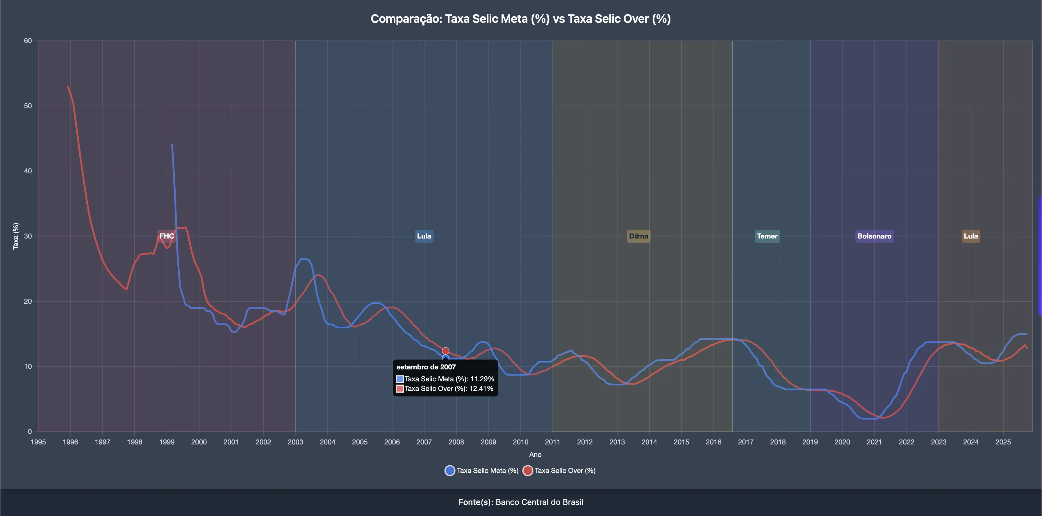 Ver gráfico Selic Meta vs Selic Over